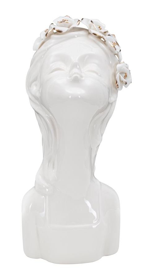 Jarra em forma de busto de menina com coroa de flores. As linhas elegantes e sinuosas dão um toque de classe e requinte.